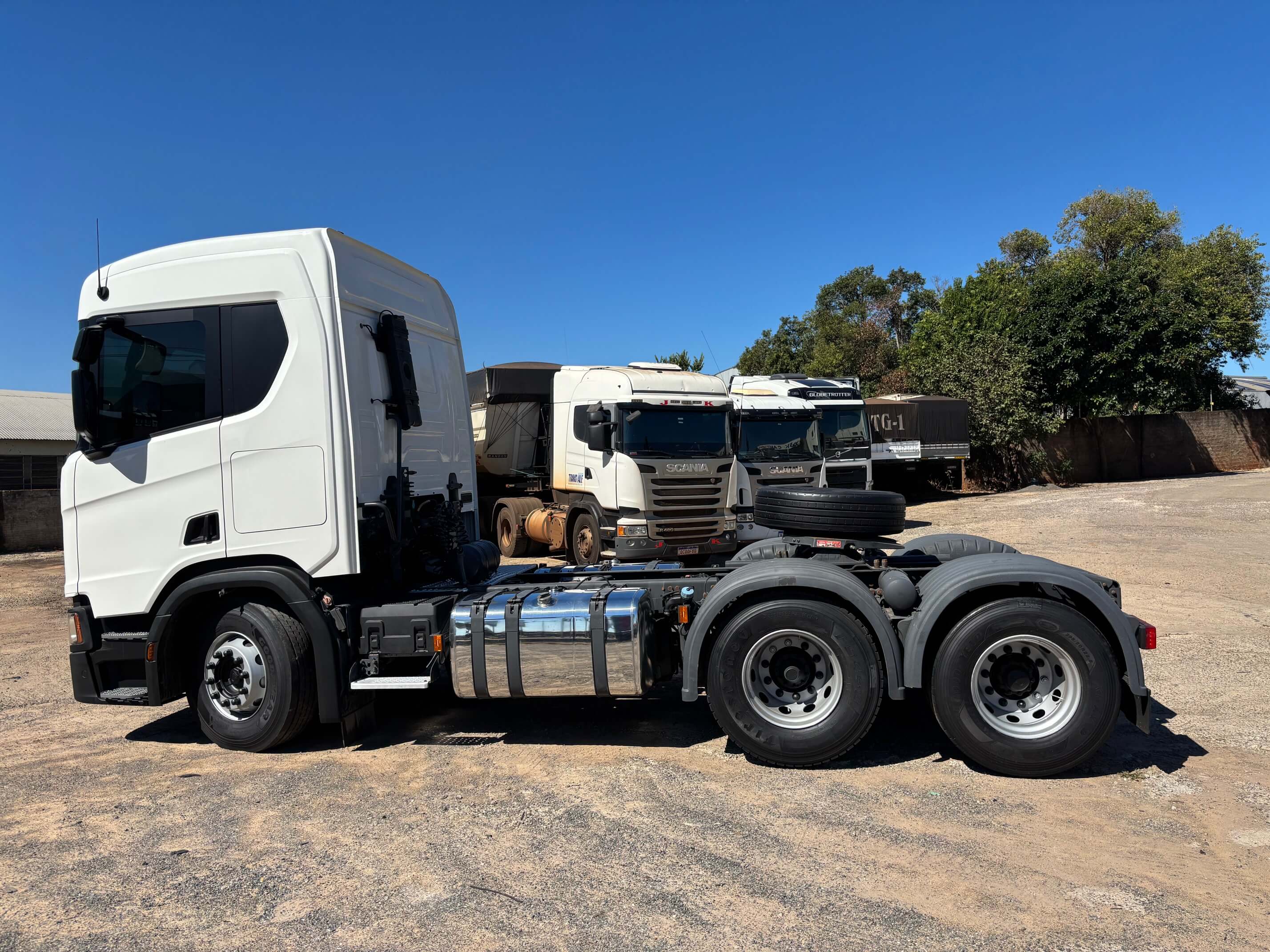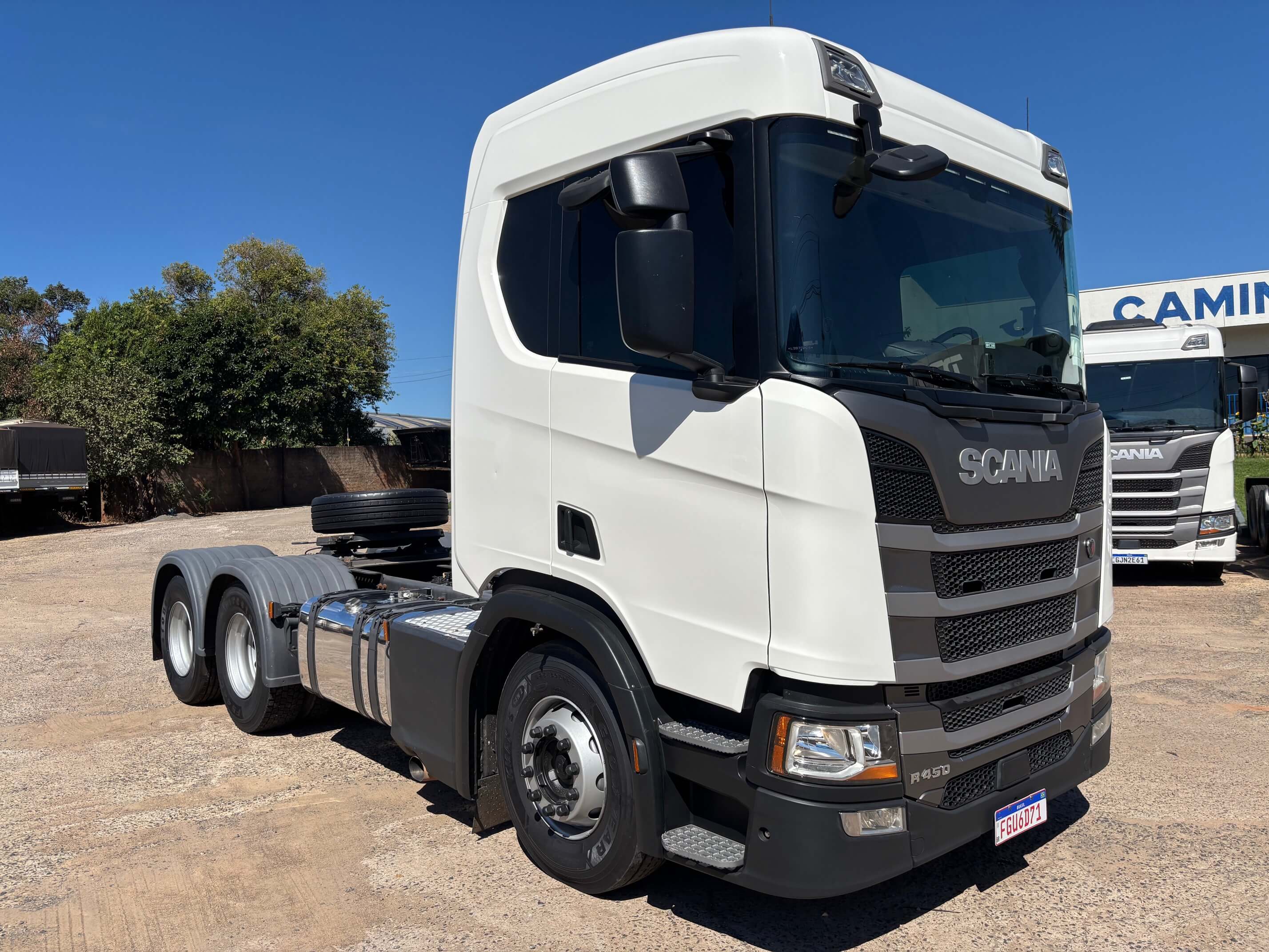 Valor R$ 520.000,00. Scania R-450 ano 2020 6x2 com 545.000 Km rodados, com freio retarder, único dono, desde zero só trabalhou no asfalto com carreta tanque Ls, caminhão todo original muito conservado, faróis no teto, manual de fábrica, pneus 60% na dianteira, pneus recapados seminovos na tração e no truck, mecânica com garantia de 3 meses em motor, câmbio e diferencial. Contato: João Rorato (44)-99943-8988. Confira os vídeos de nossos veículos em nosso canal do Youtube ou TikTok JK Caminhões. Perfil no Instagram Seminovos JK